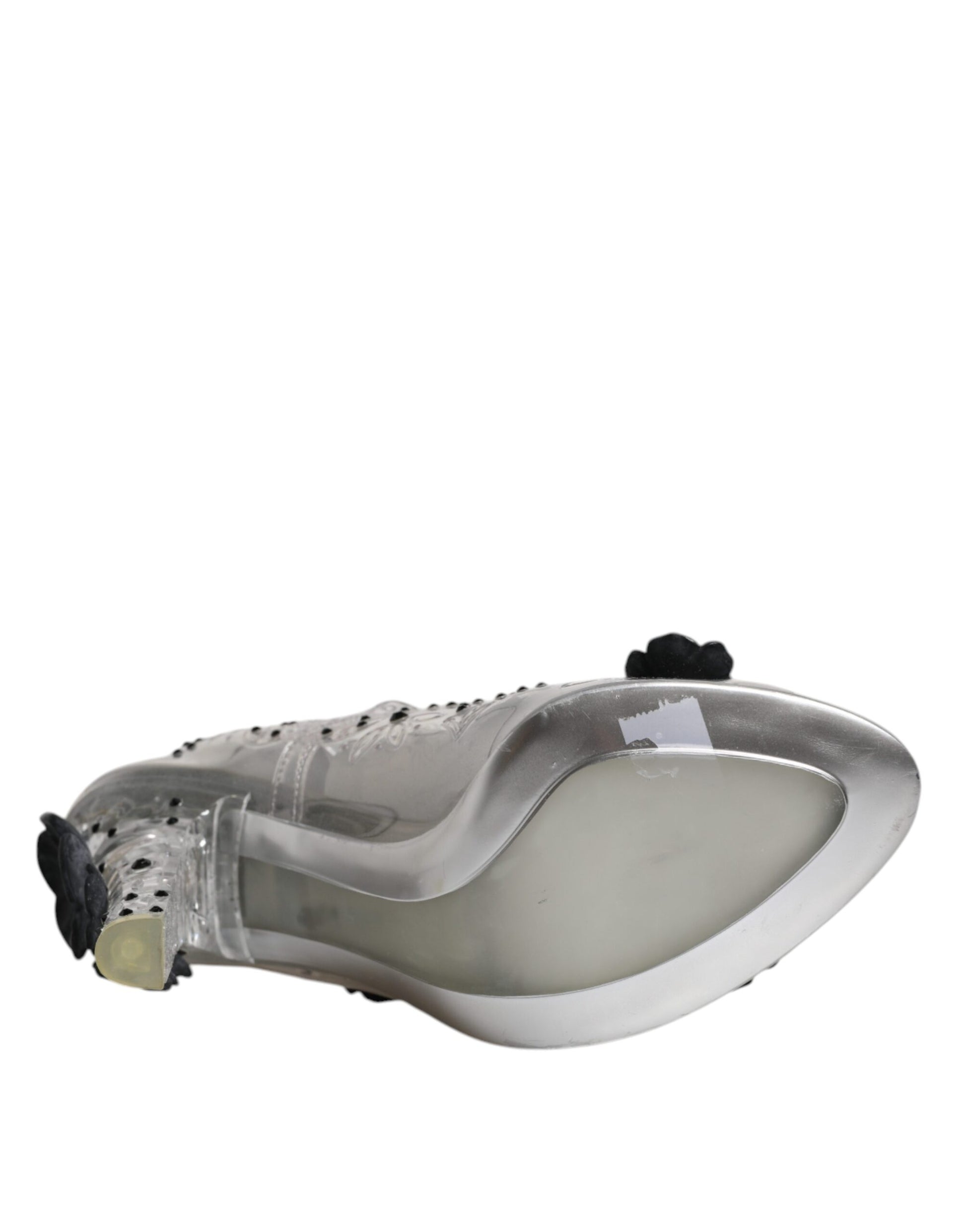 Dolce & Gabbana Clear Floral Crystal CINDERELLA Heels Shoes